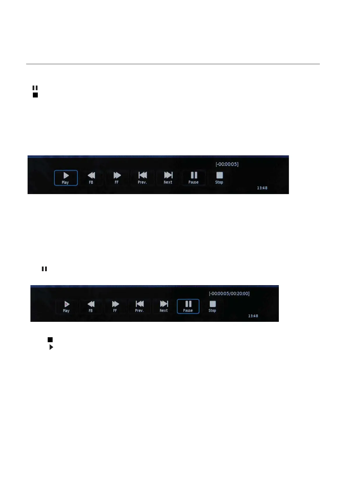 PAUSE: Time Shift-Modus aufrufen, mit erneutem Tastendruck Aufnahme wiedergeben.