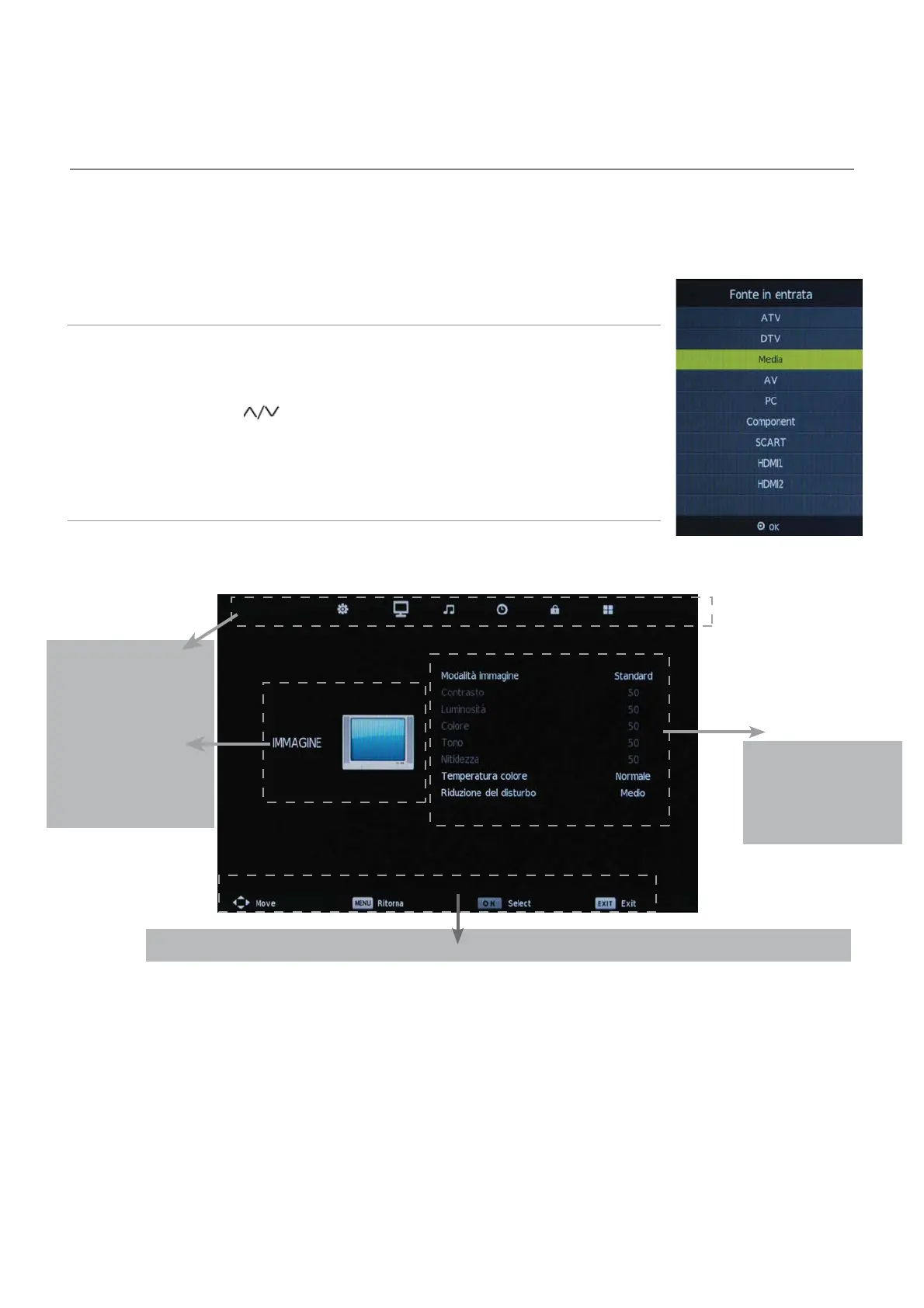 * (Premete il tasto EXIT per uscire dalla visualizzazione del menù).