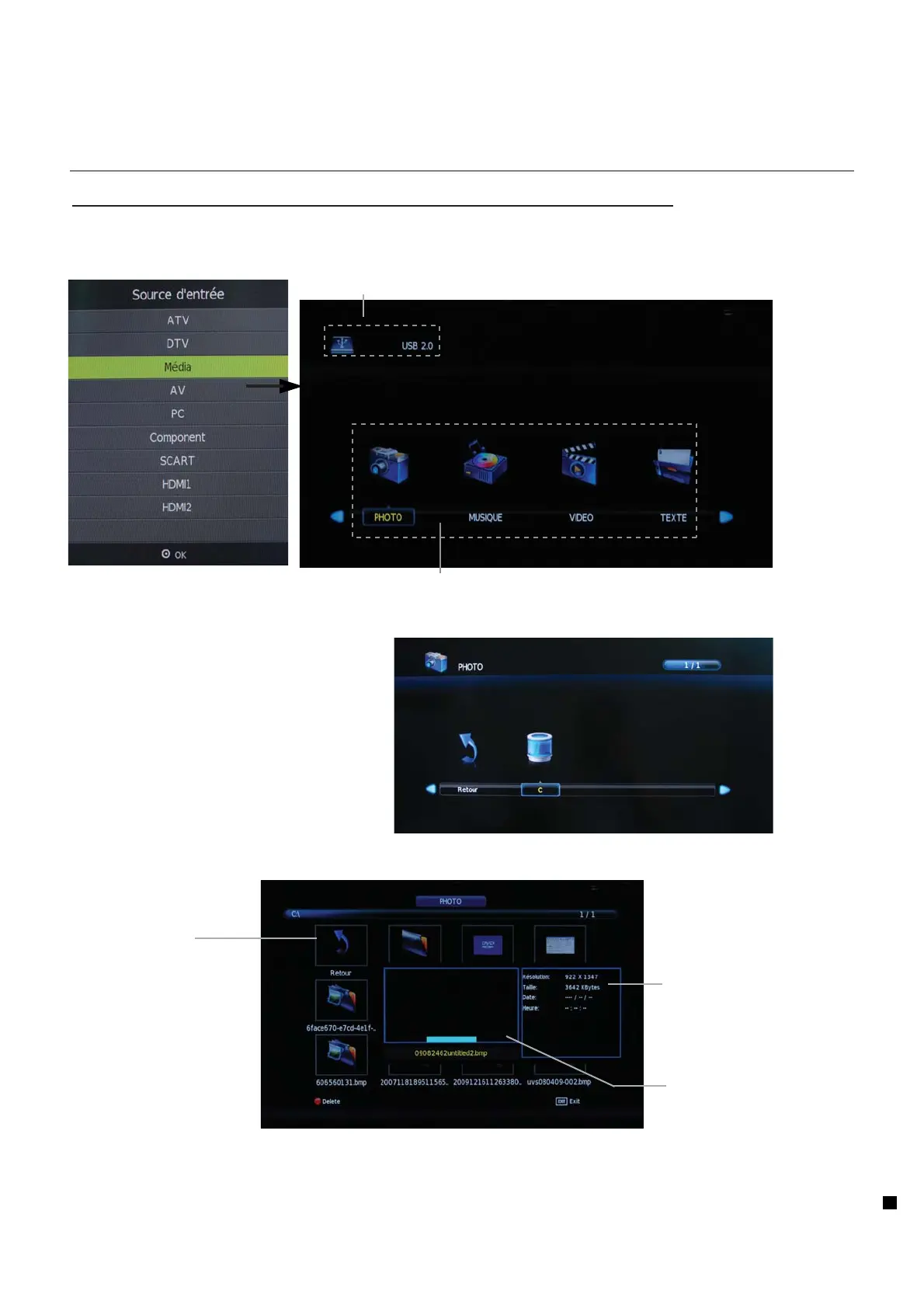 3). Appuyer sur le bouton / pour sélectionner le périphérique USB et appuyer sur le