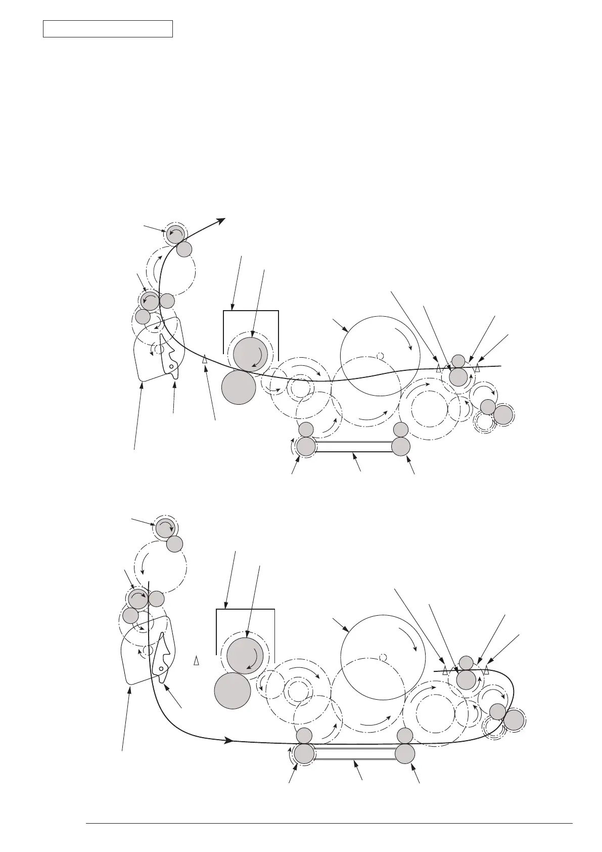 2. By the inverse rotation of the eject roller the paper is inversely rotated and conveyed to Duplex.