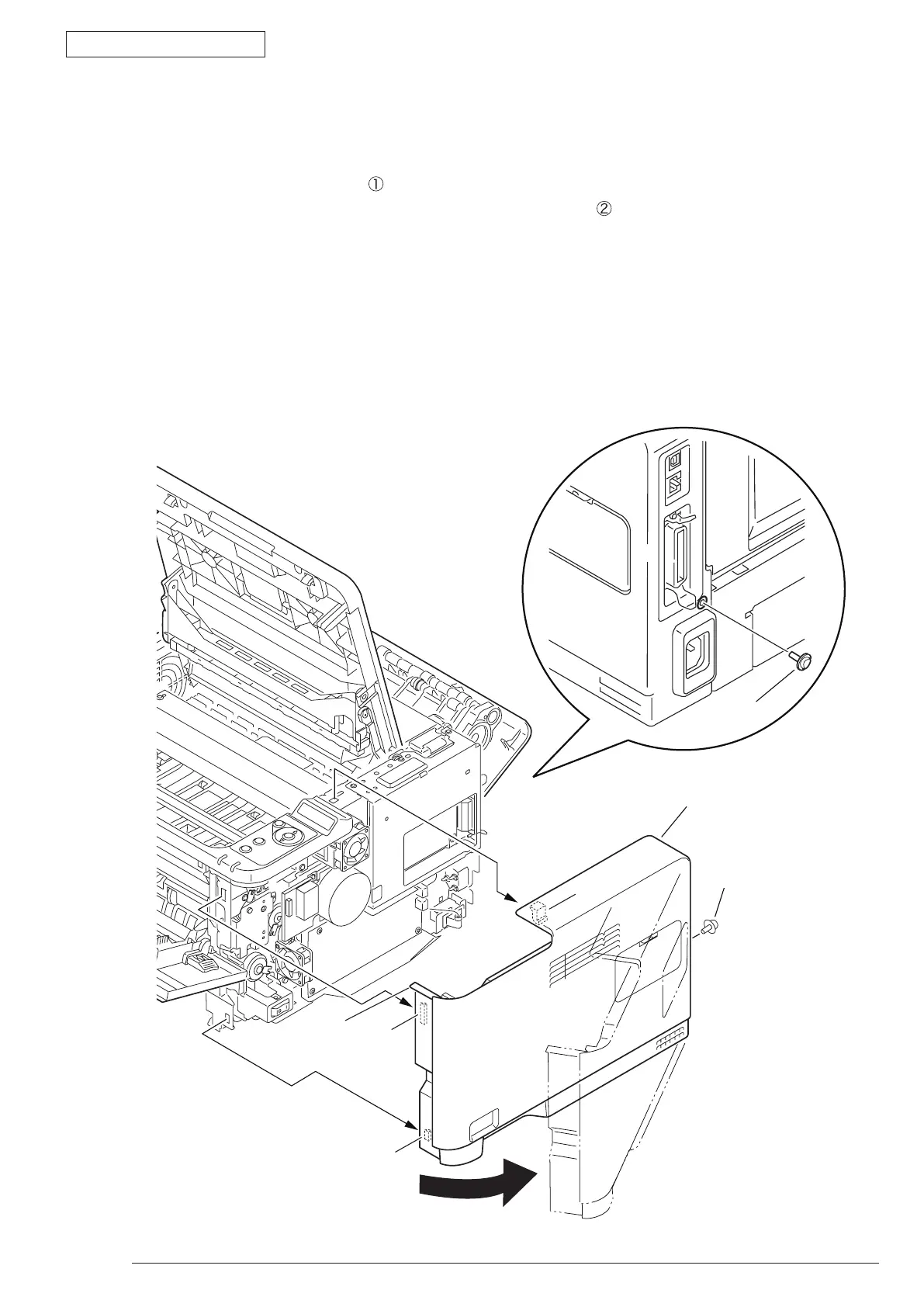 (4) Disengage the four tabs (a to d) and remove Cover-Side-R