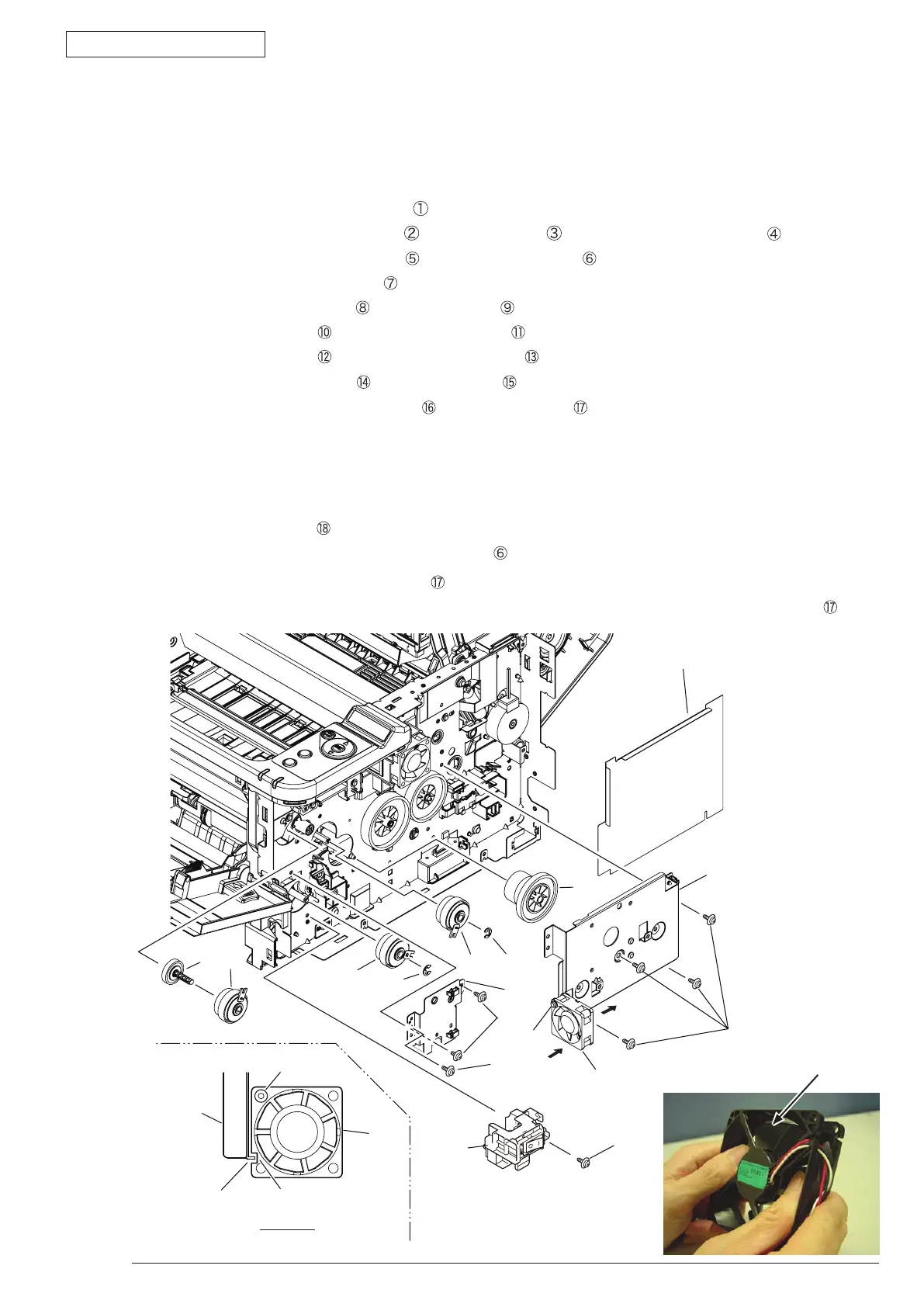 photo. In case of the impeller unfastened by mistake, do not reuse it and install a new FAN .