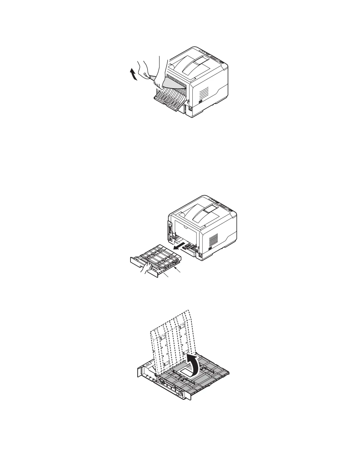 7. Abra a tampa traseira e verifique se há papel no percurso traseiro.