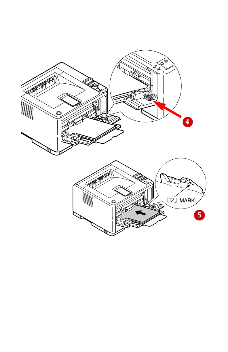 4. Coloque o papel na bandeja multifuncional e pressione o