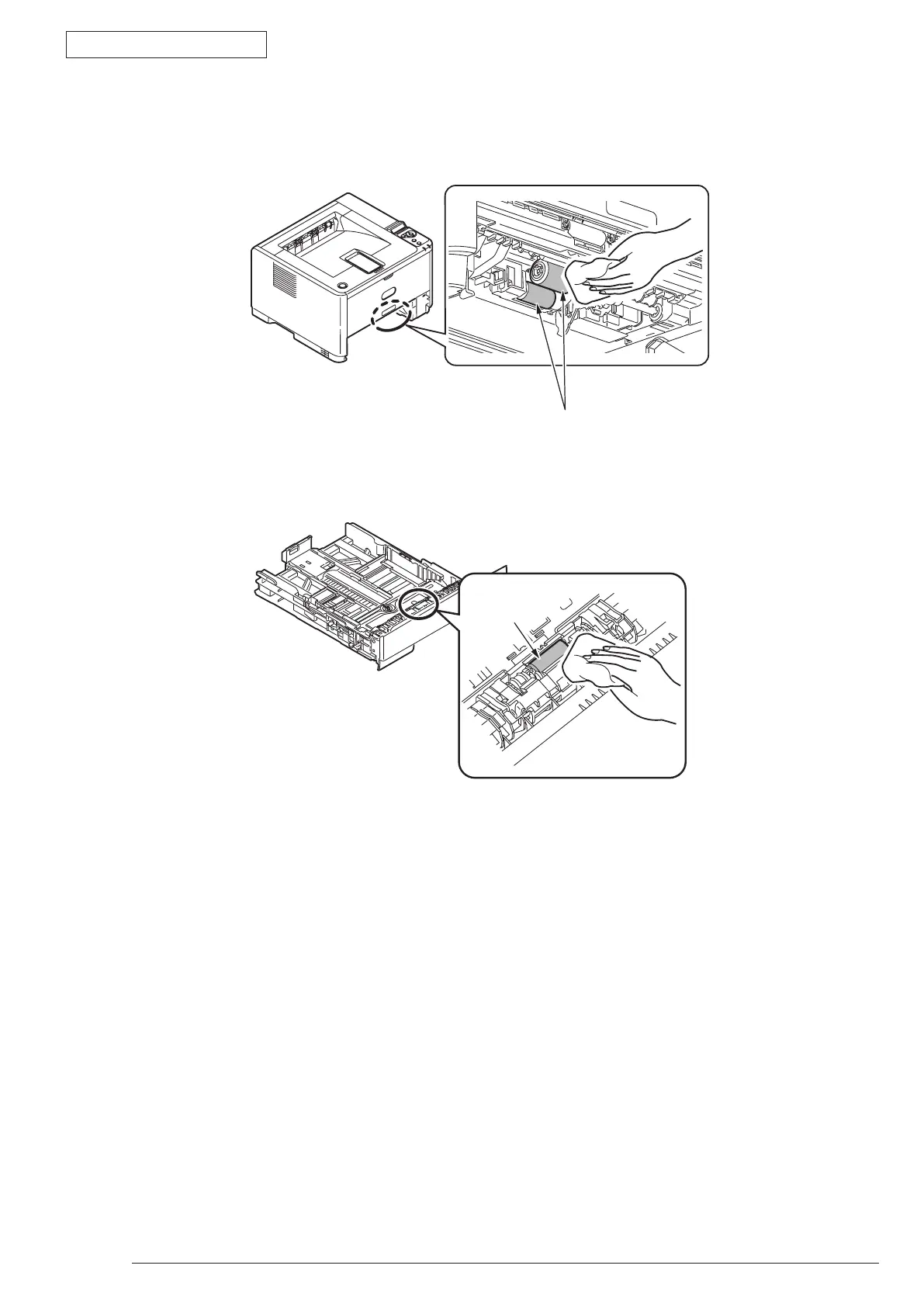 (2) Wipe the Retard roller of the paper cassette with a tightly wrung cloth soaked in water.