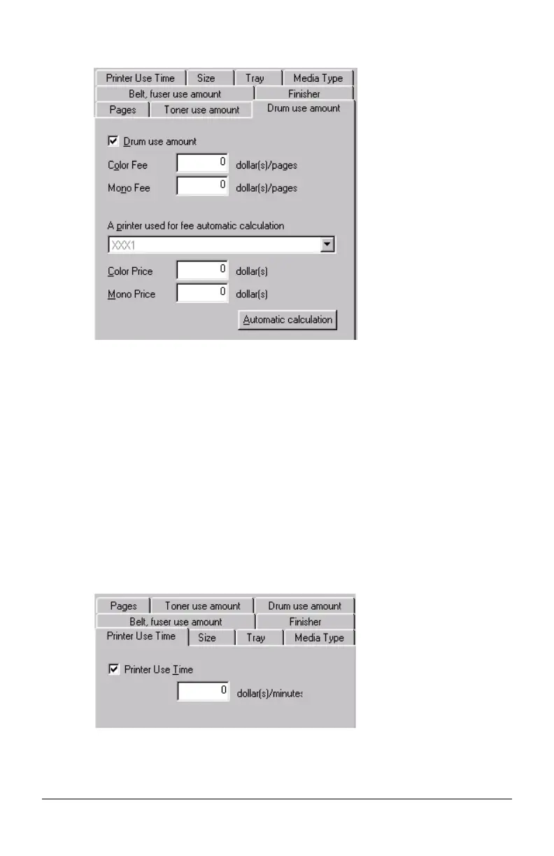 – 聺 Drum use amount: Select to set a standard fee per page for