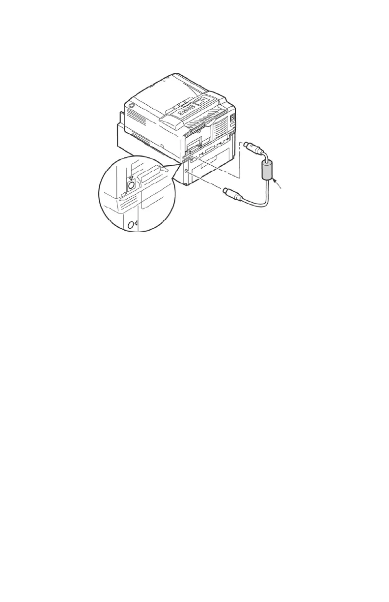 7. Insira o cabo de conexão na bandeja e na impressora,