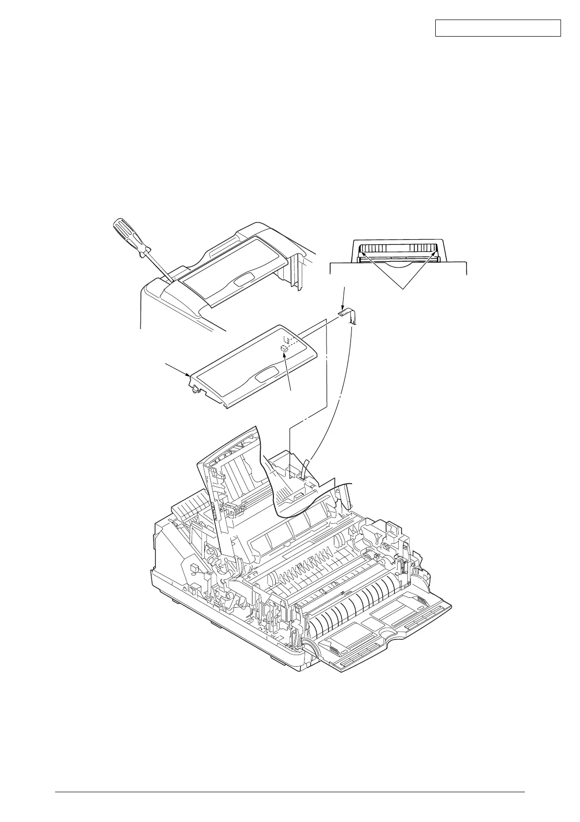 (1) Unlock two latches on the upper cover from the rear side, lift the operator panel assy 1 from the