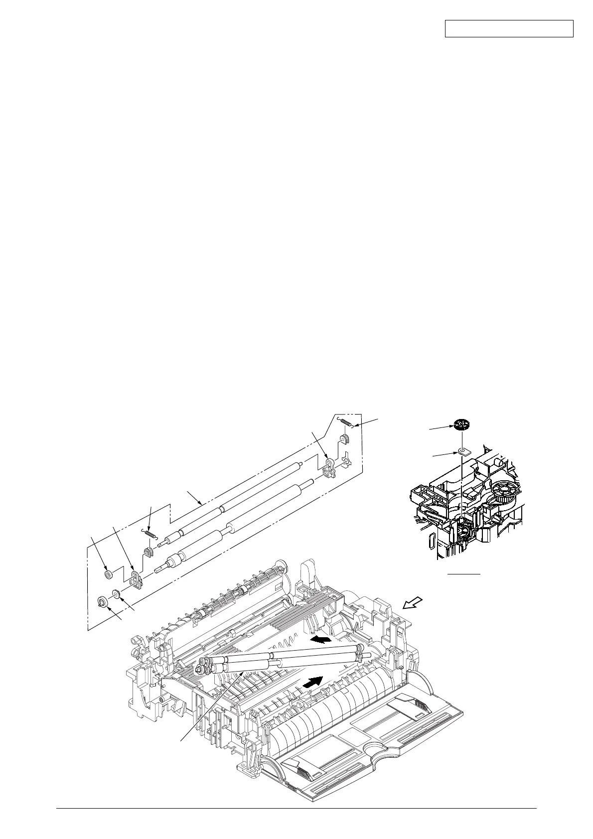 (11) Remove the pressure roller Assy gear 7 by unloking the latch of the gear 7.