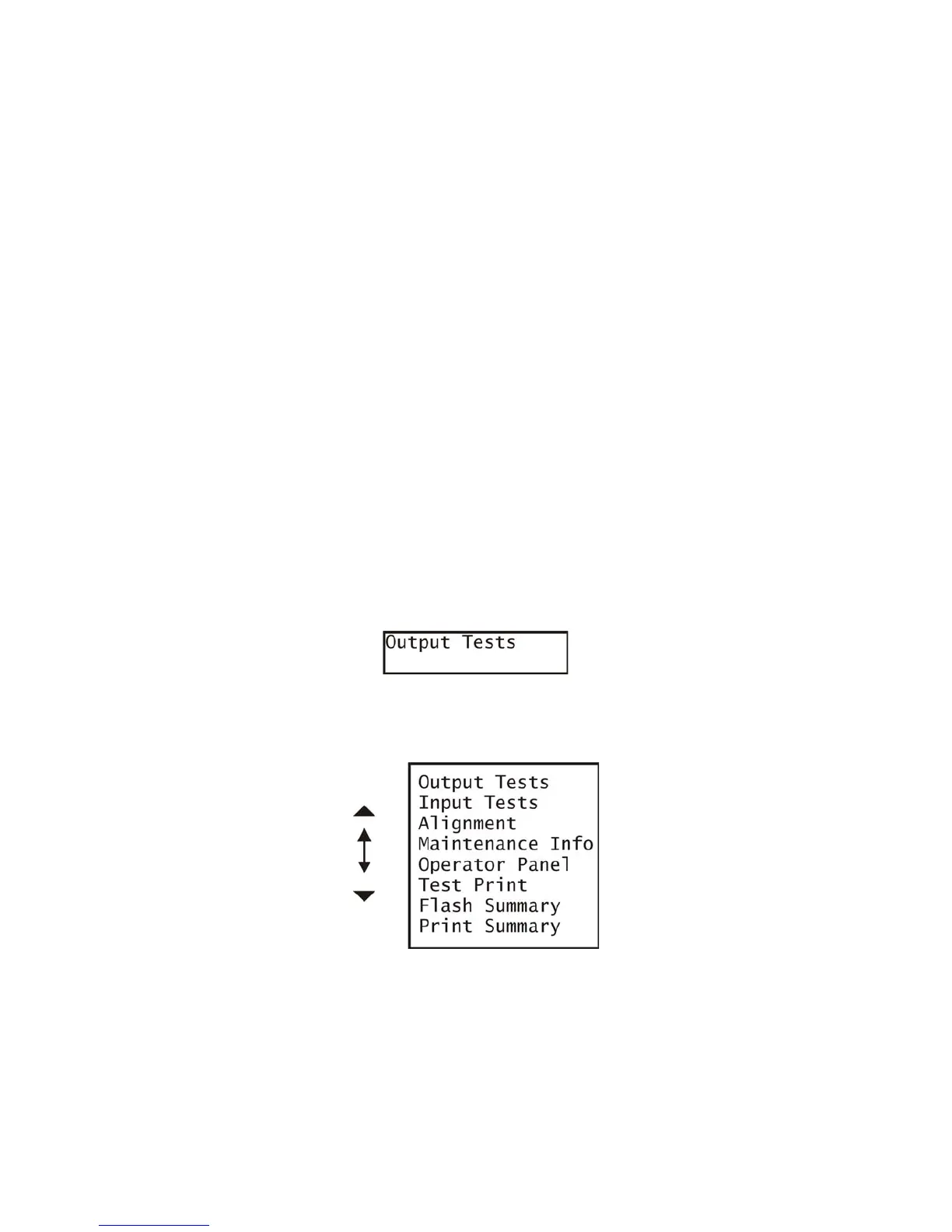When you first enter diagnostics, the LCD will display “Output Tests” and the first selection of the main