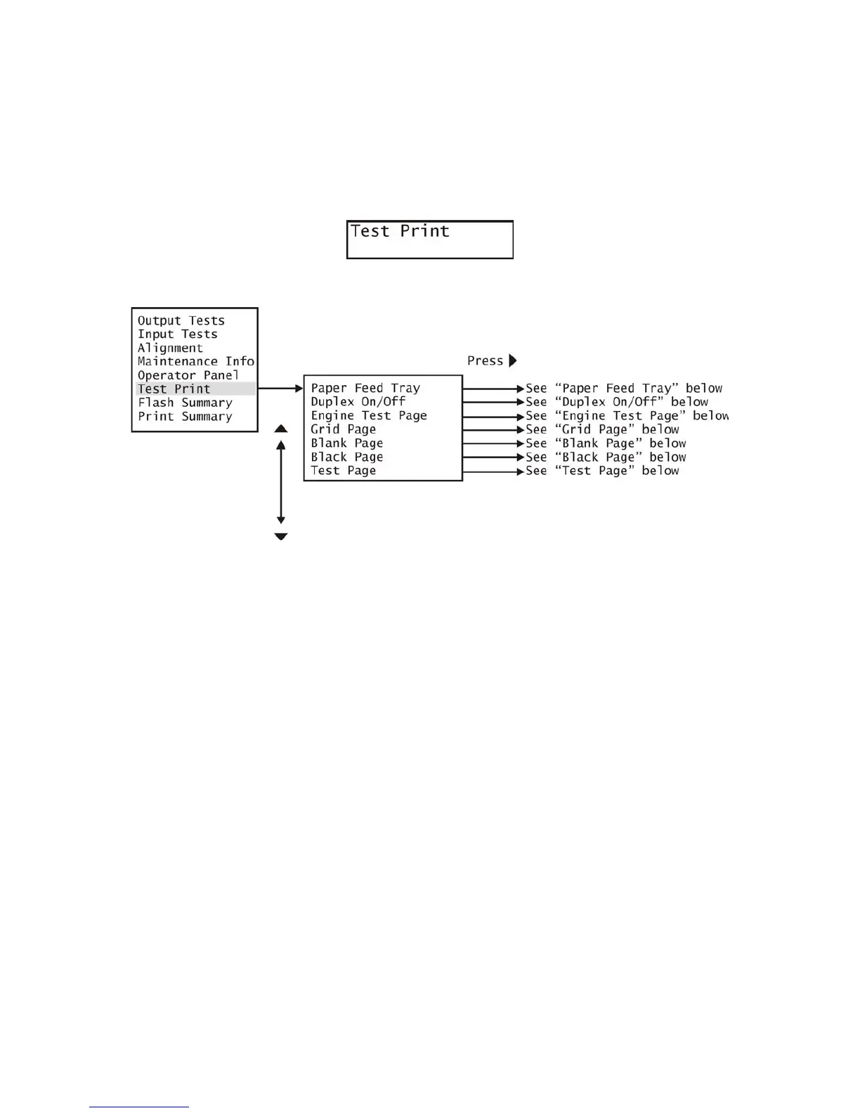 With the desired choice displayed, press “X” to save your choice and return to the Test Print Menu.