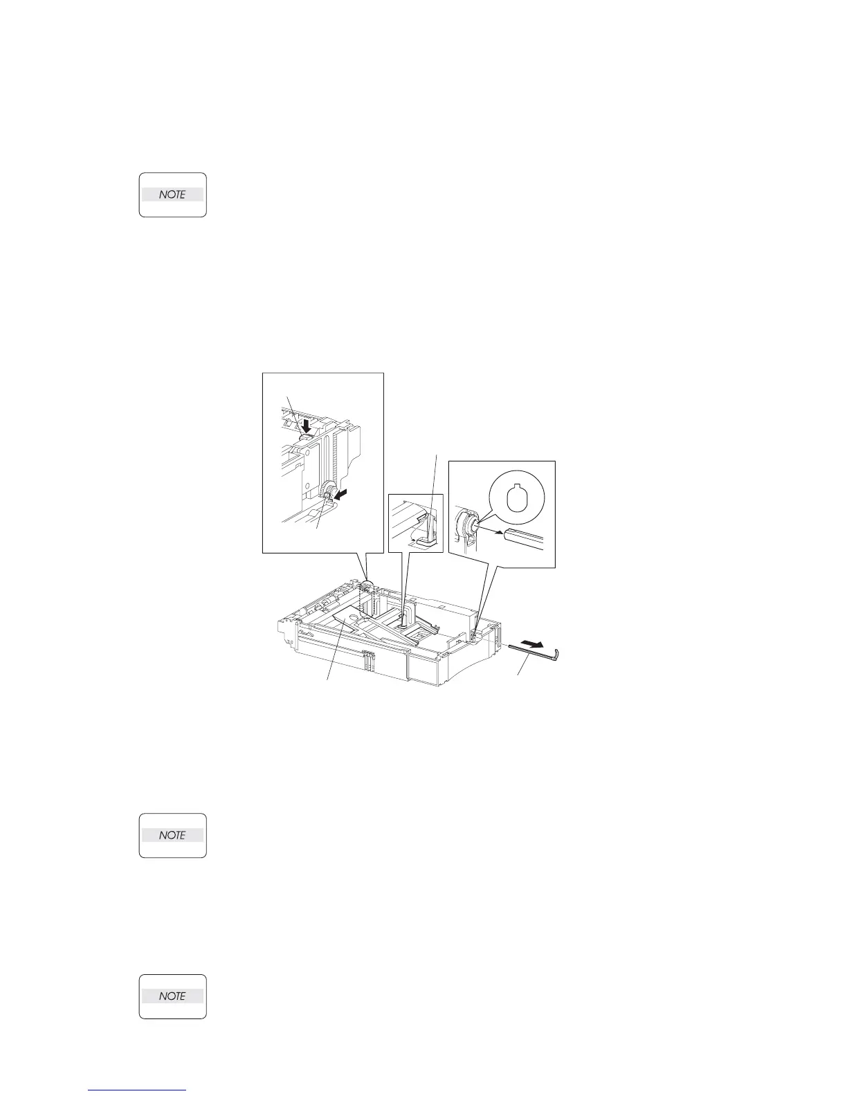 5) While pressing the link lever down to the bottom side of the 550 PAPER CASSETTE, slowly but
