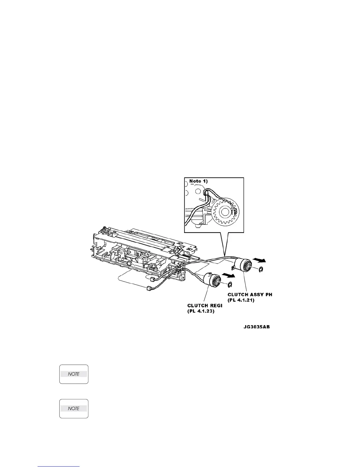 The part names differ with the CLUTCH ASSEMBLY PH and CLUTCH REGI, but they are