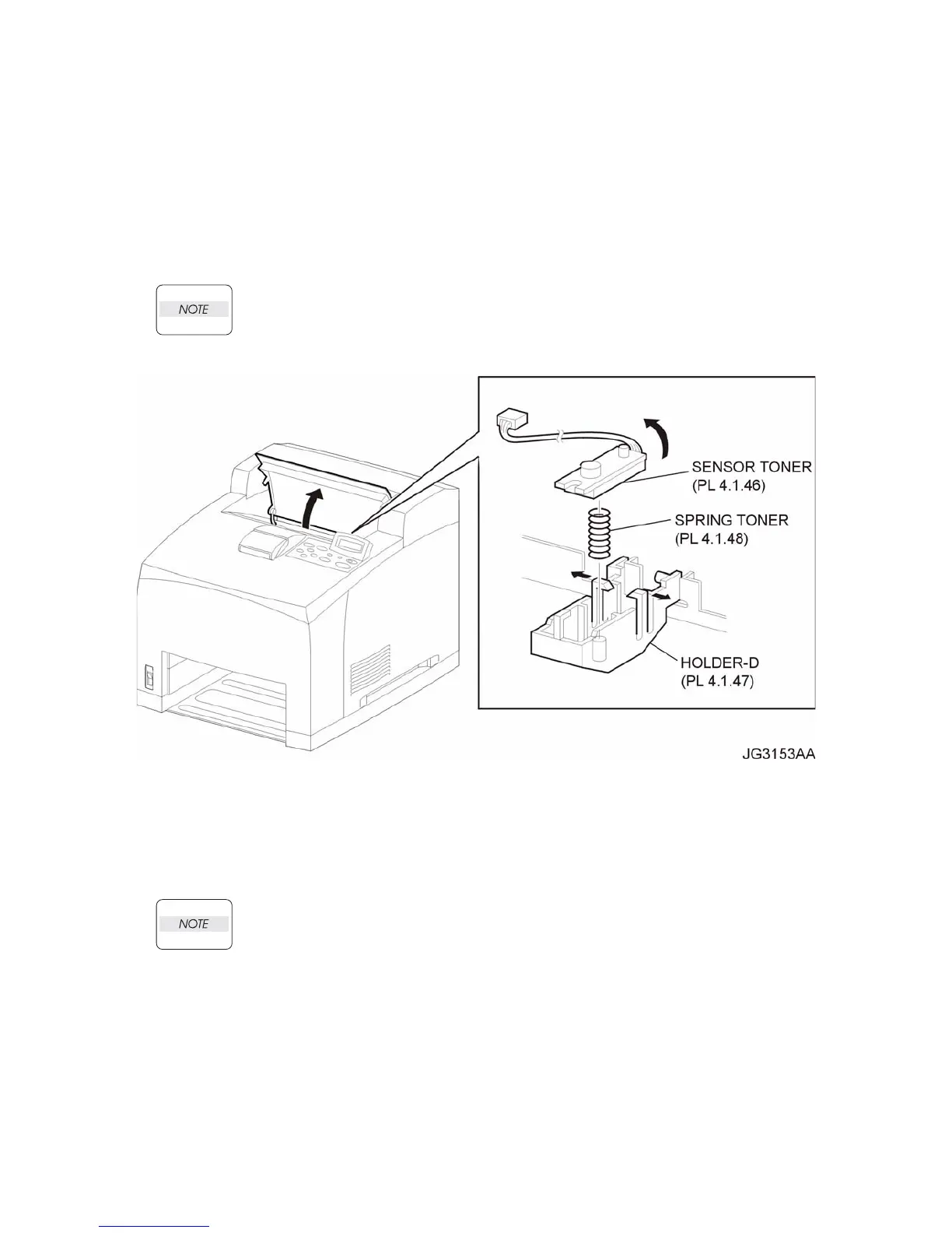 When removing the SENSOR TONER, be careful not to lose the SPRING TONER (PL