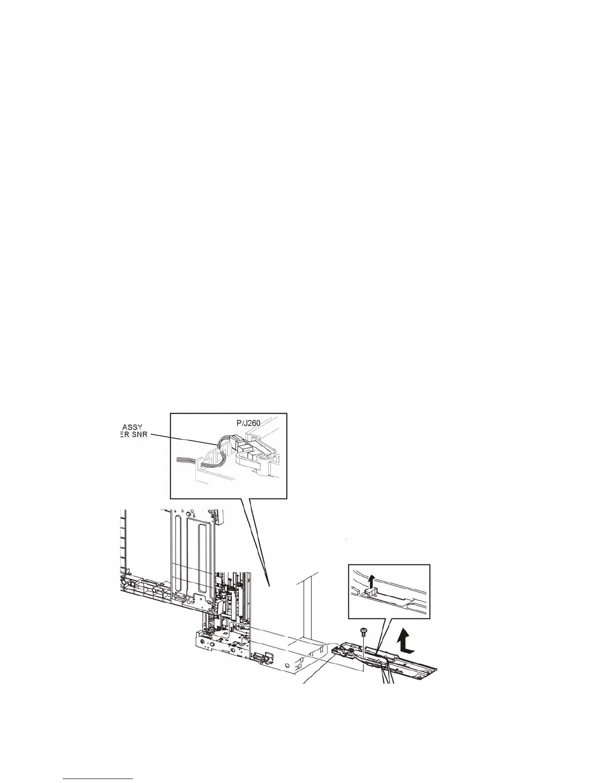 12) Disconnect the connector (P/J260) of the HARNESS ASSEMBLY LOW PAPER SNR from the
