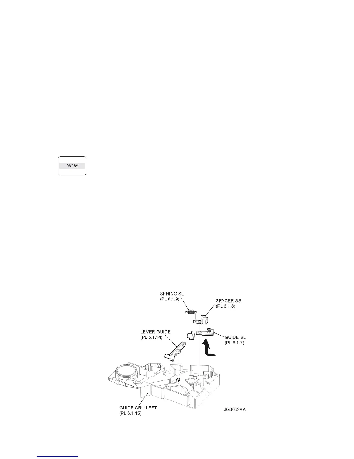 20) Remove the SPRING SL (PL 6.1) from the GUIDE CRU LEFT (Figure 1).
