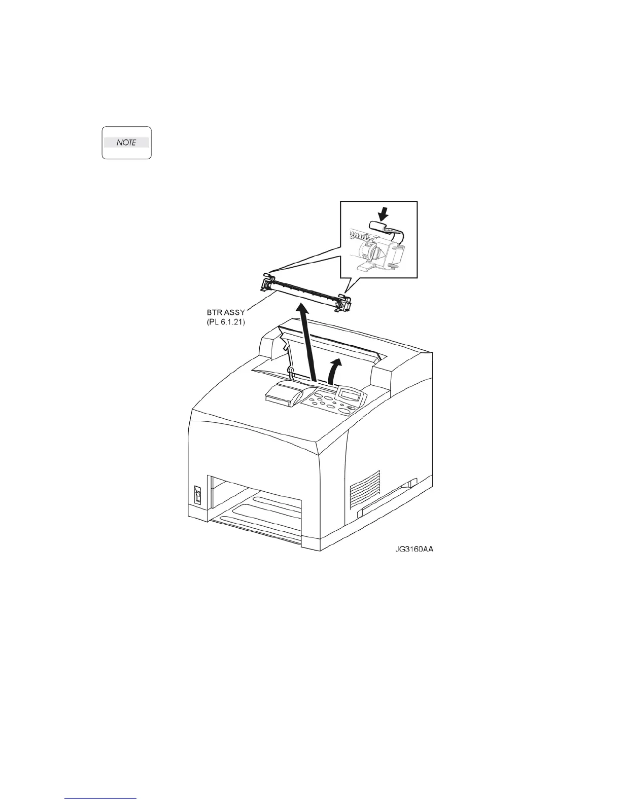 2) Pinch the hooks of both ends of the BTR ASSEMBLY, and remove it from the printer (Figure 1).