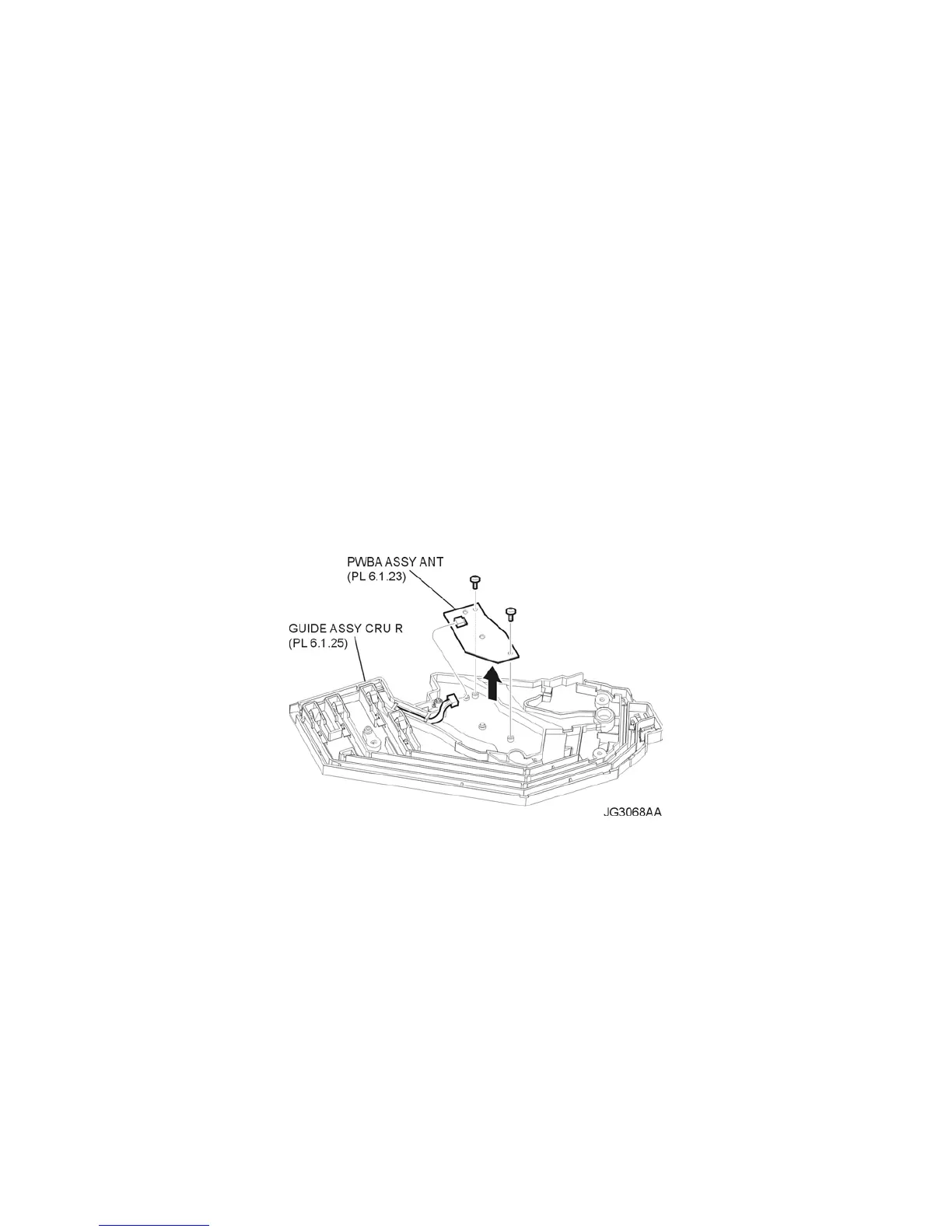 2) Install the PWBA ASSEMBLY ANT to the GUIDE ASSEMBLY CRU R (PL 6.1) using the 2 screws