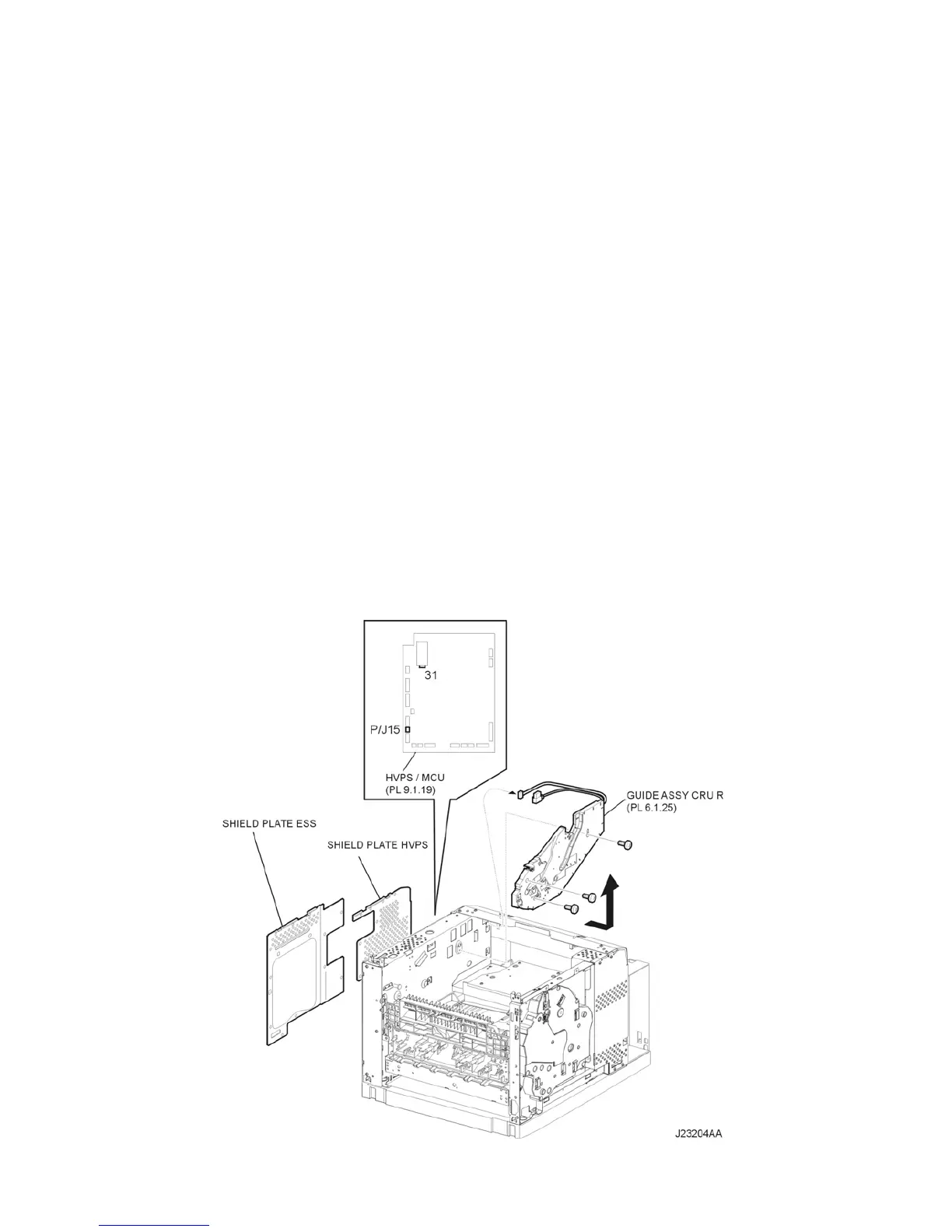 14) Disconnect the connector (P/J31) of the GUIDE ASSEMBLY CRU R from the HVPS/MCU (PL