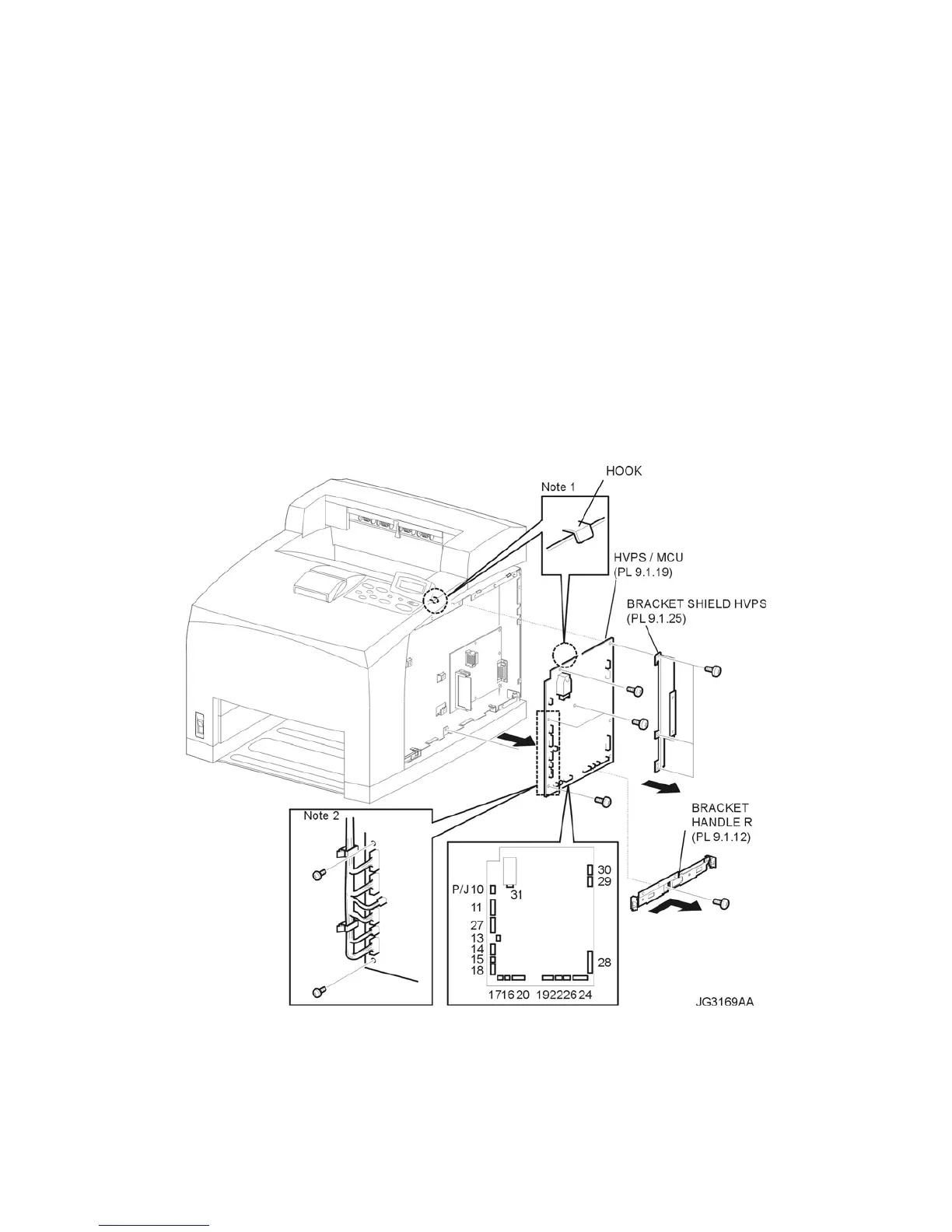3) Remove the SHIELD PLATE HVPS (PL 9.1) (RRP9.9).