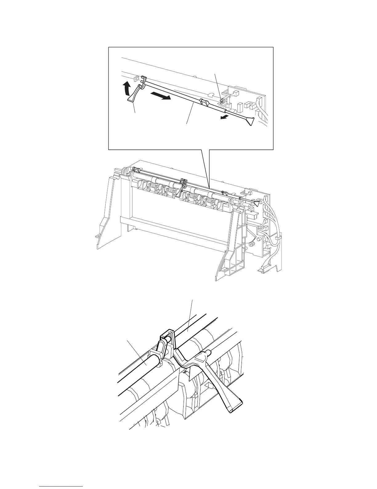 1) Lift up the ACTUATOR FULL STACK in the direction of the arrow (1), and insert it to the hook.
