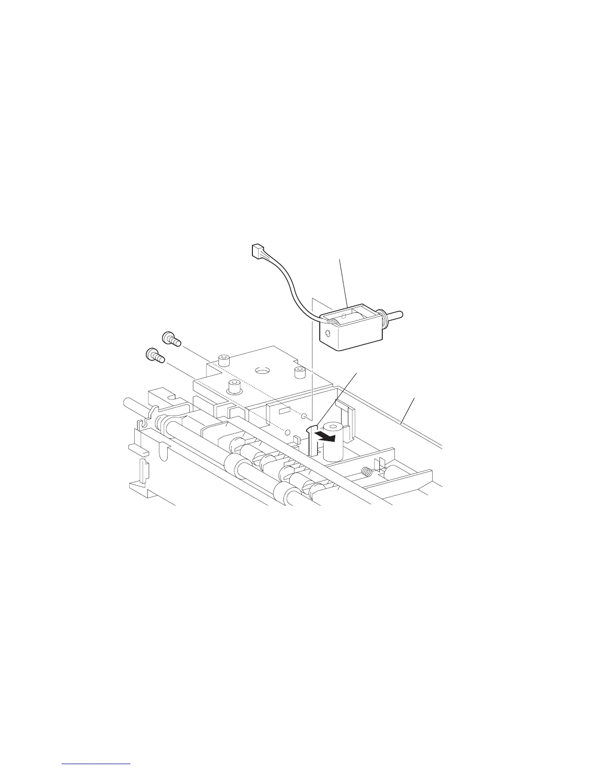 7) Release the hook securing the SOLENOID ASSY GATE, and remove the SOLENOID ASSY