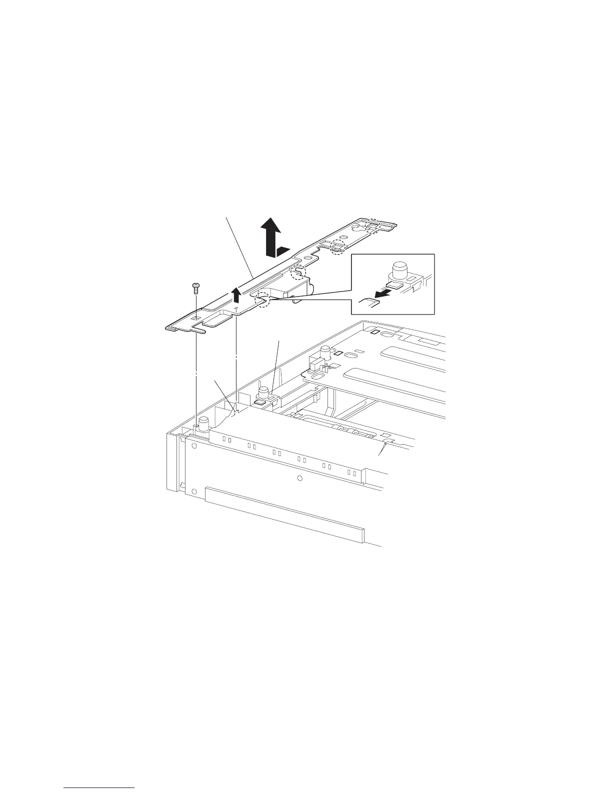 2) Lift up the COVER RIGHT PLATE just above the boss of the FRAME CVR R550 (PL 12.1) a lit-