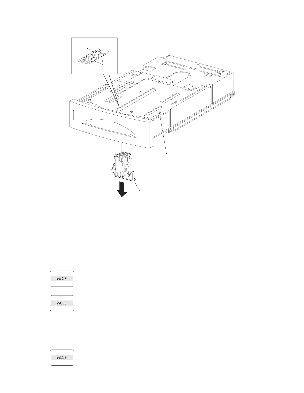 Be sure to put 2 claws at the tip of the PLATE ASSY BTM under the hooks on the HOUS-