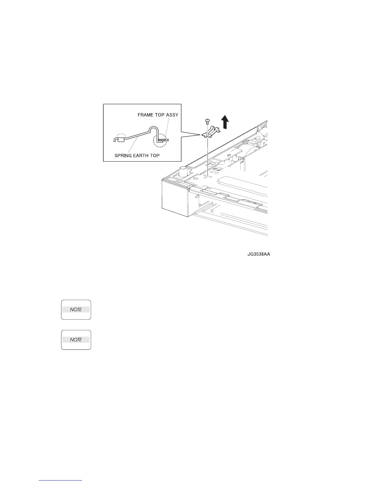 1) Remove the screw (silver, 6mm) securing the SPRING EARTH TOP to the FRAME TOP ASSY