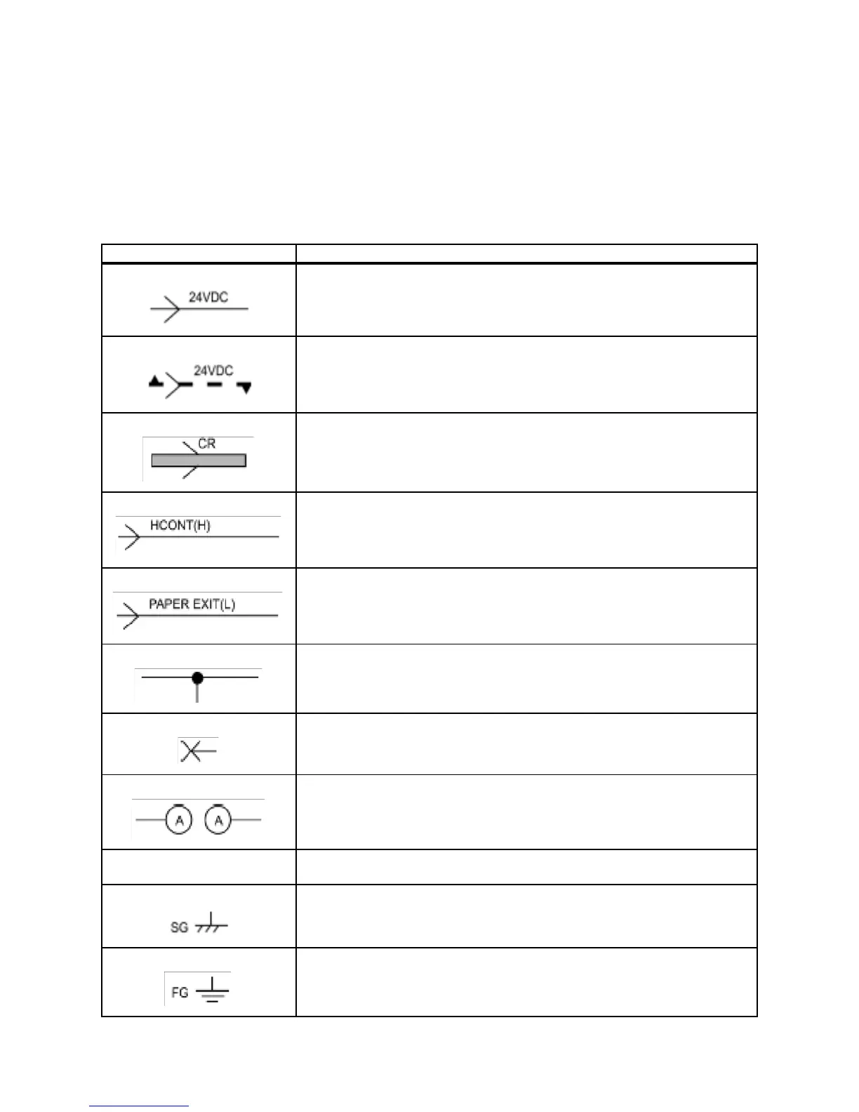 and indicates its signal name/contents. The arrow ">" or "<" on the line rep-