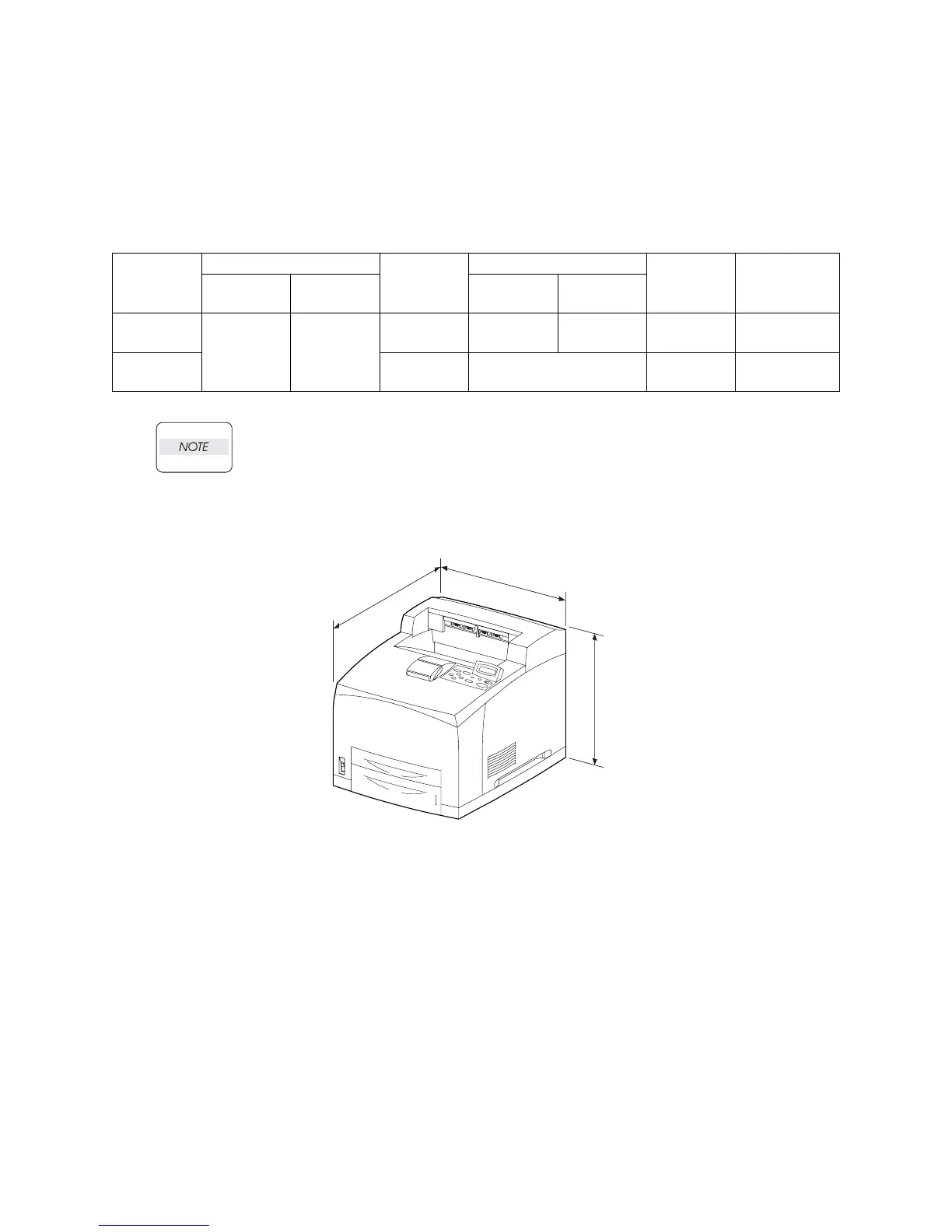1. These sizes exclude print engine’s side and rear louver, a rear knob and top bump.