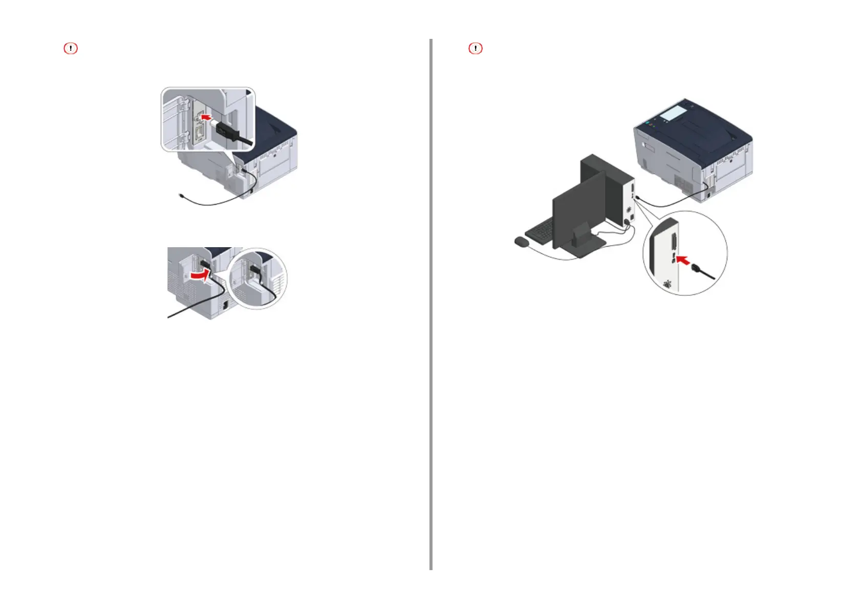 Do not insert the USB cable into the network interface connector. It may cause a malfunction.