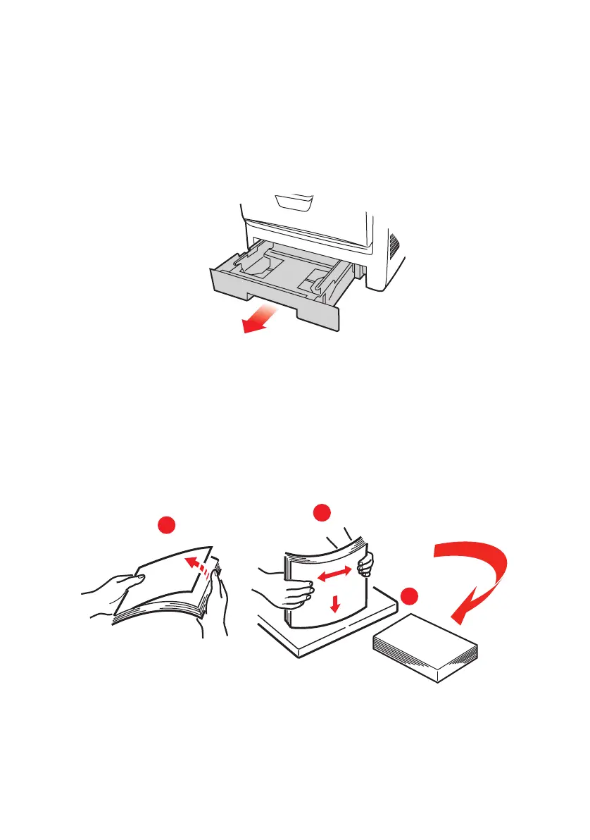 Fan the paper to be loaded at the edges (1) and in the
