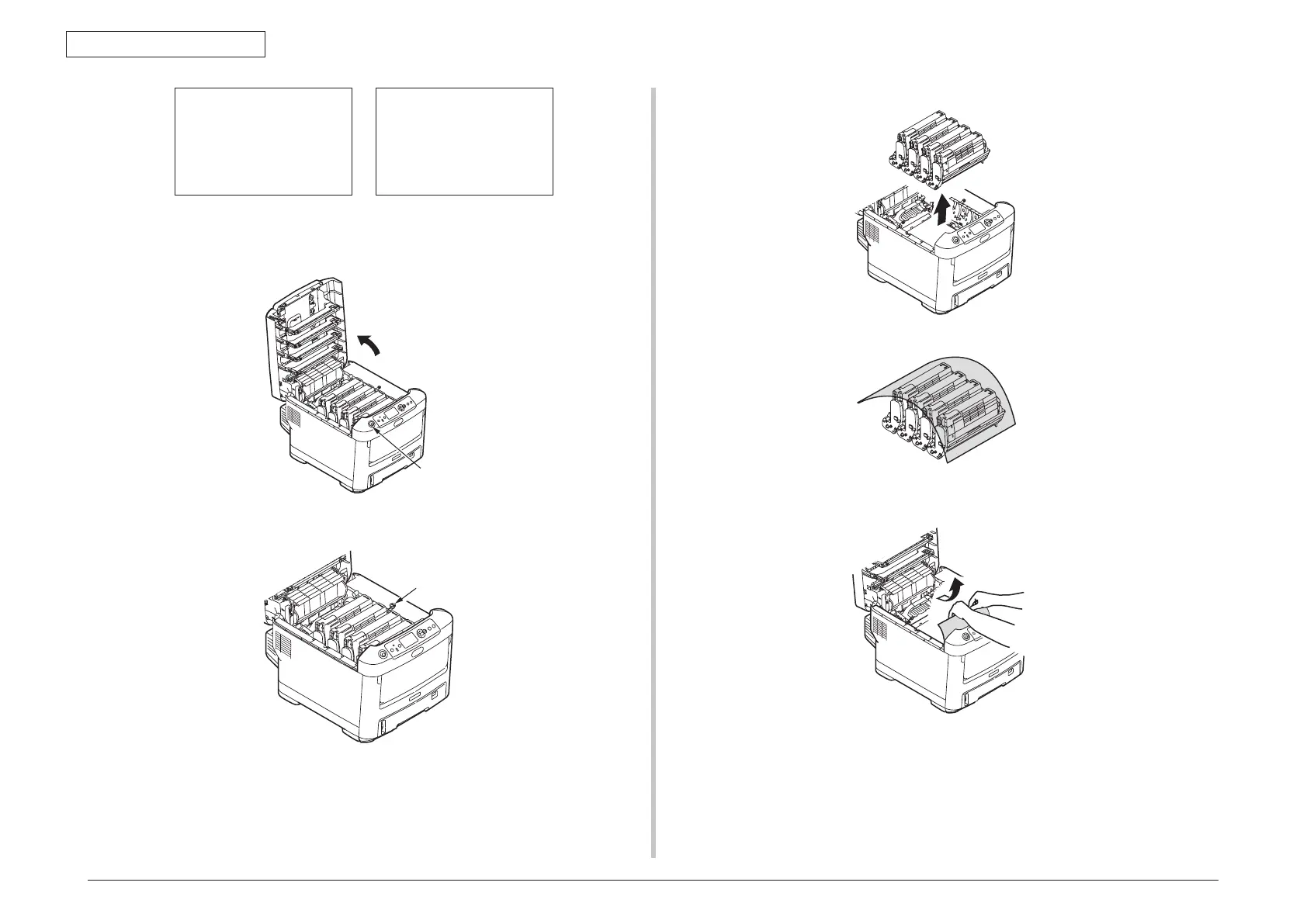 (3) 2Uninstall the four image drum cartridges and put them on a flat table.