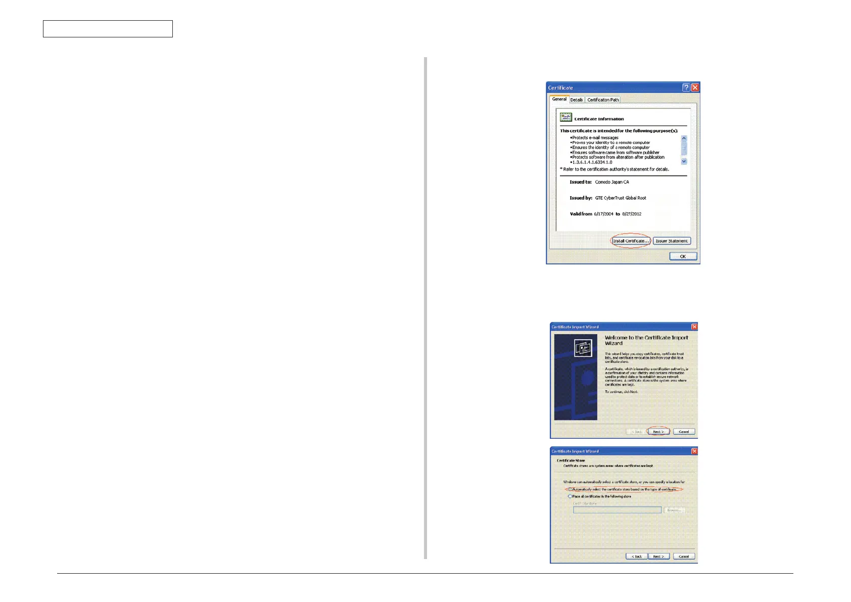 The "Certificate Import Wizard" is displayed. Install Certificate in accordance
