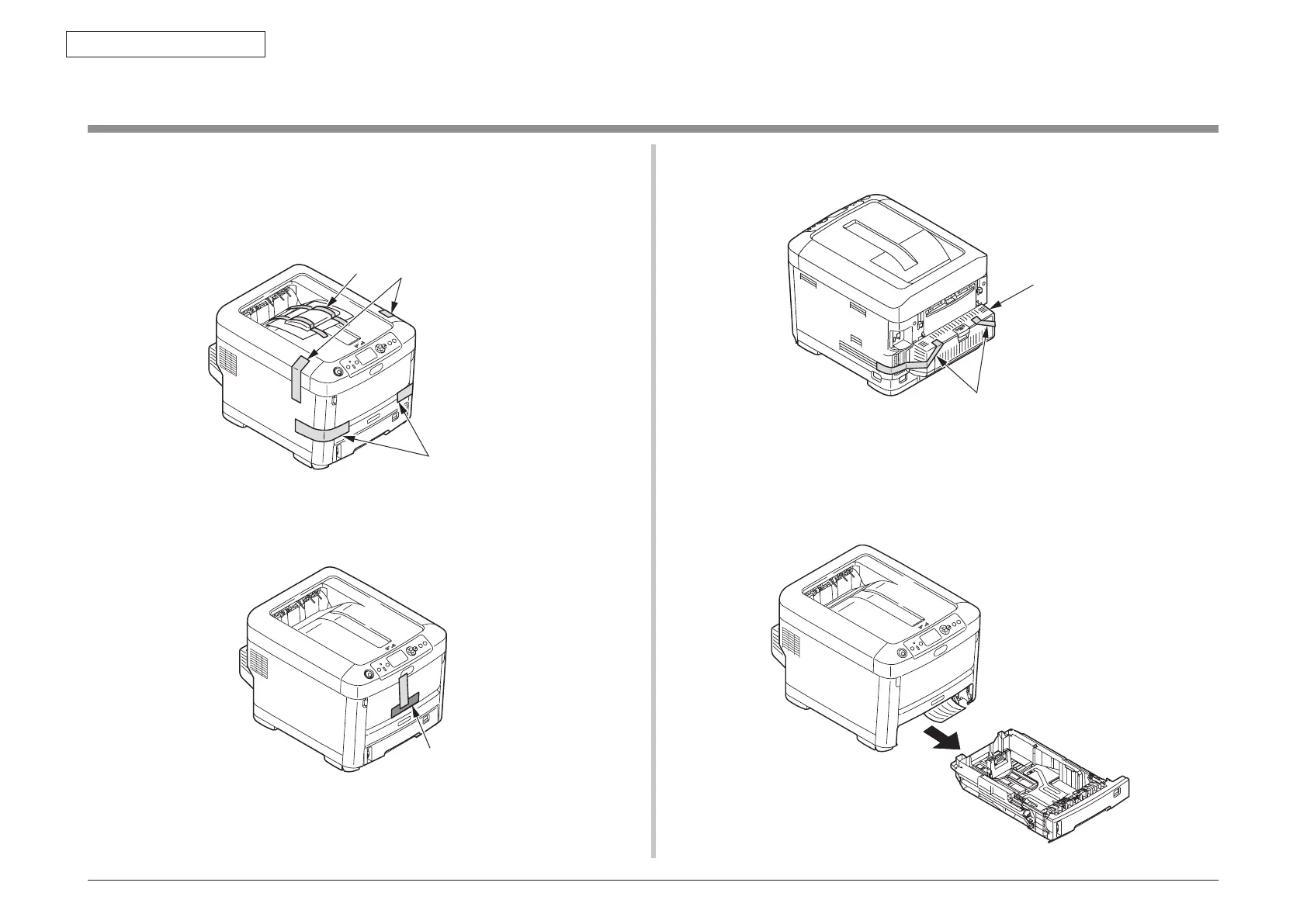 (1) Peel off the desiccant and the protection tape (four places) on the printer.