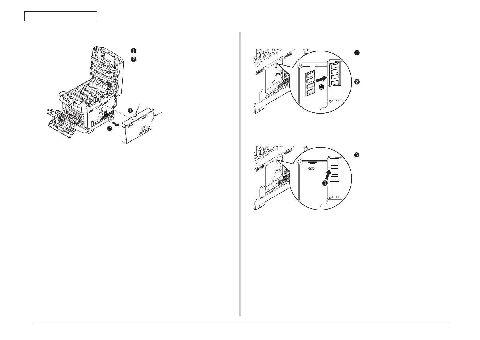 (3)-3. Remove the side cover. (3)-4. Install the memory.
