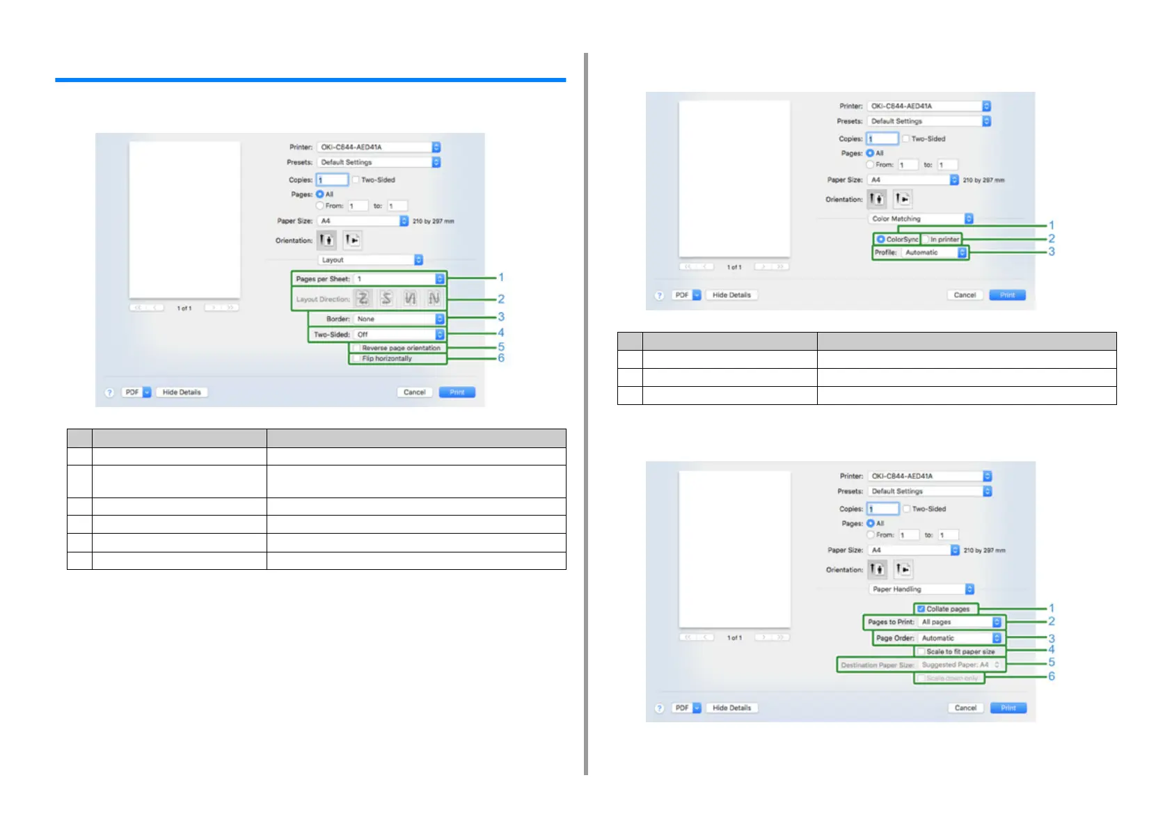 2 Layout Direction Specifies the layout that is applied when printing multiple pages on a