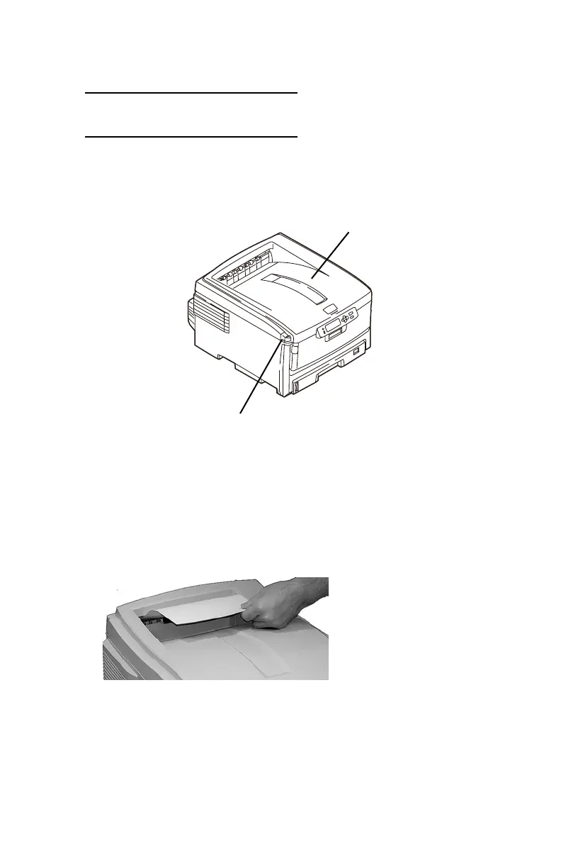 1. Press the cover release (1). Fully open the printer’s top