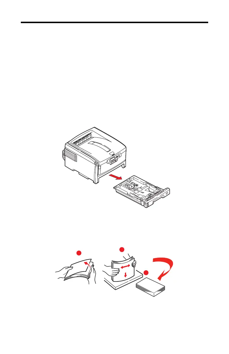 2. Fan the paper to be loaded at the edges (1) and in the