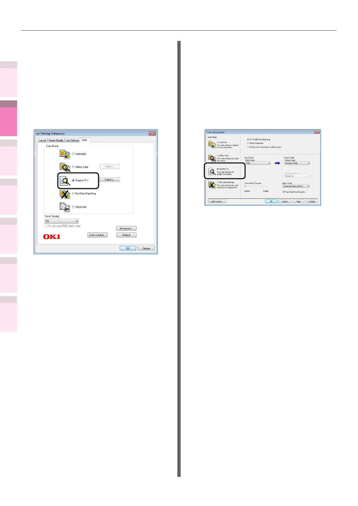 Select [Graphic Pro] in [Color Mode] in