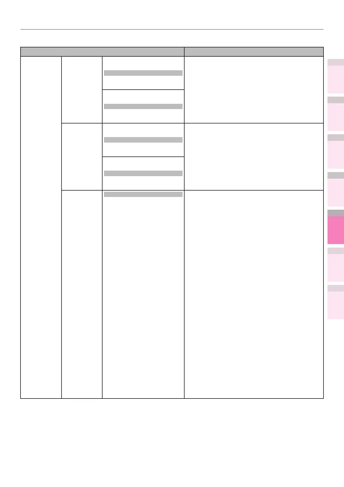Shaded areas are factory-set values.