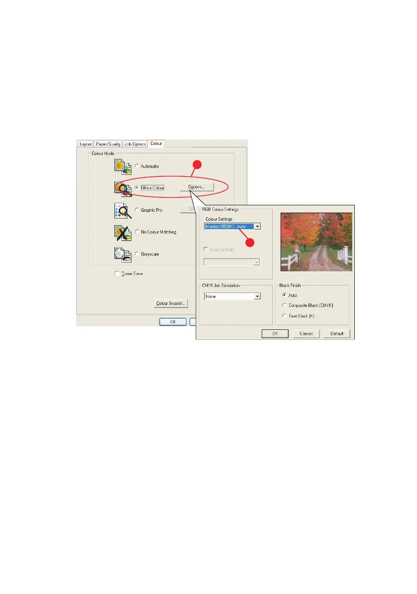 1. On the printer driver [Colour] tab, select [Office Colour]
