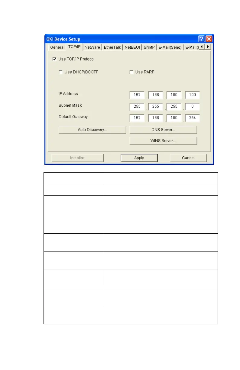 TCP/IP Tab (Oki Device Setup)