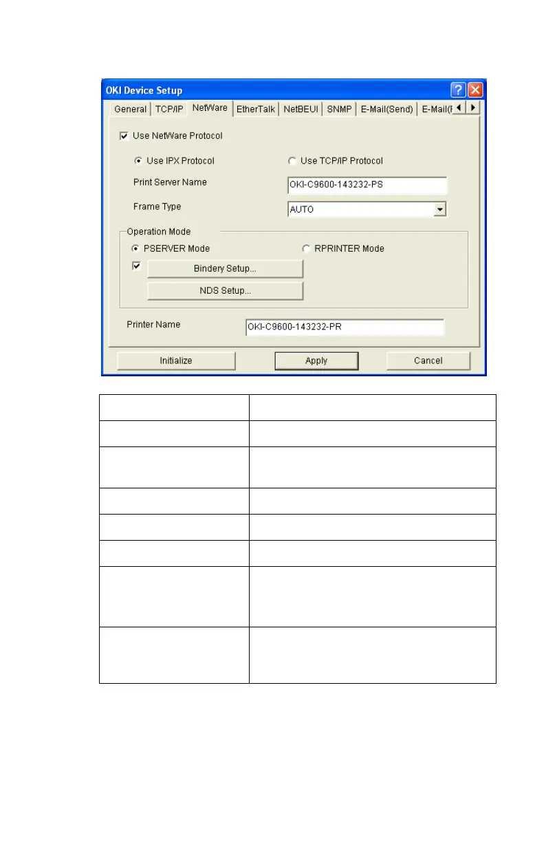 Use NetWare Protocol Enable/disable NetWare protocol.