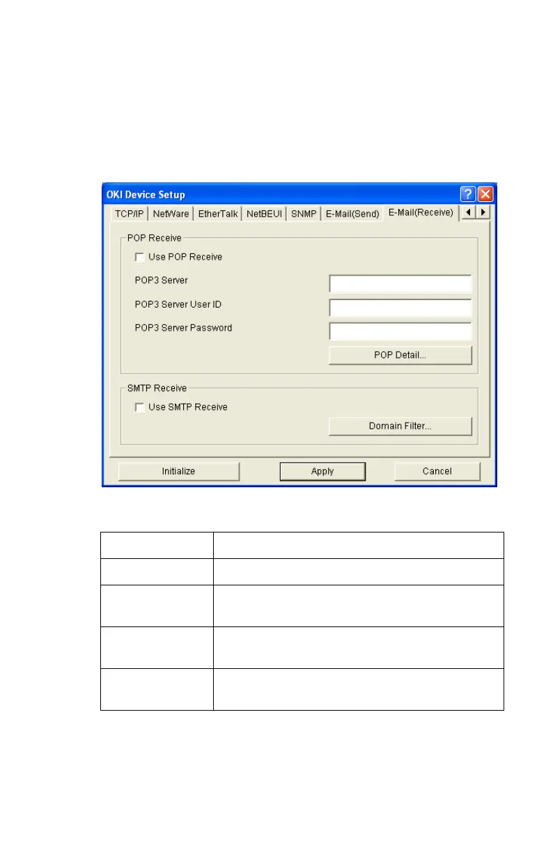 Use POP Receive Enable/disable receiving E-Mail via POP3.