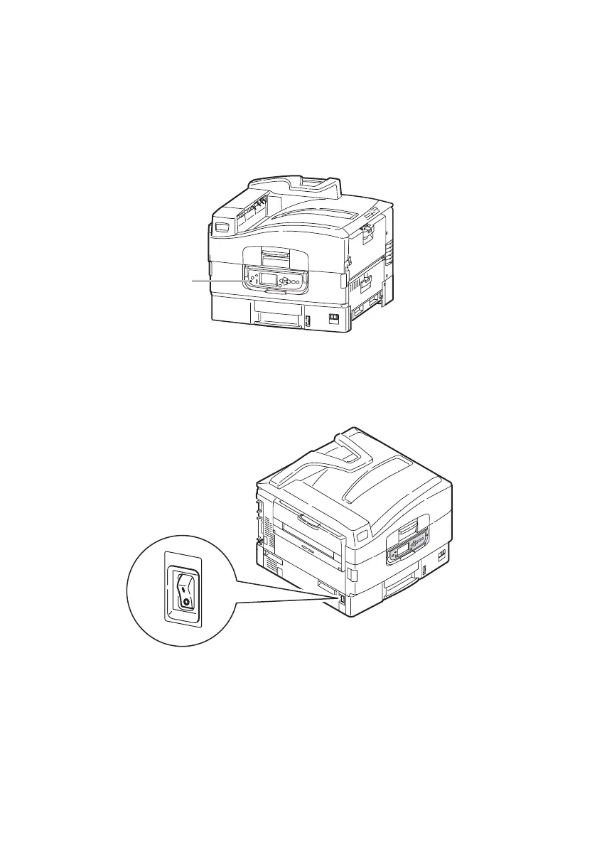 restart the printer, use the On/Off switch to turn off the