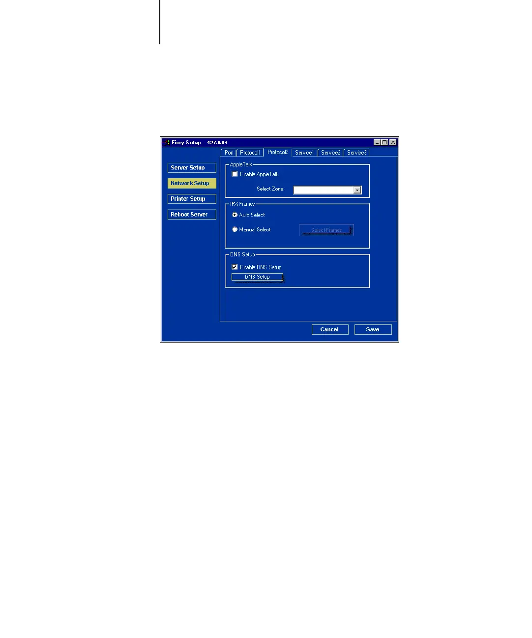 You can enable DNS Setup to allow the Fiery to resolve a name to an IP address.