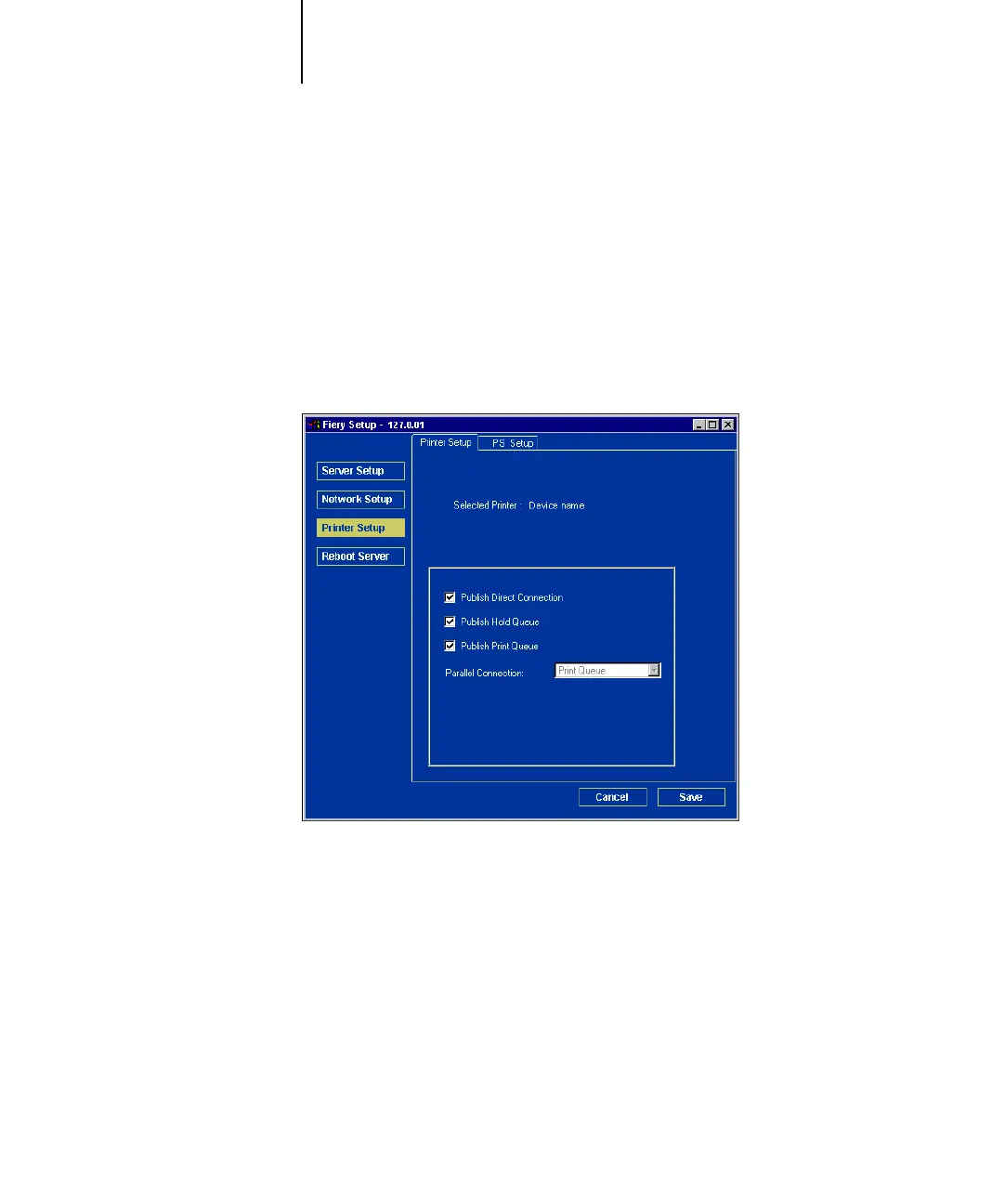 Specify whether to publish the Print queue, Hold queue, or Direct connection.