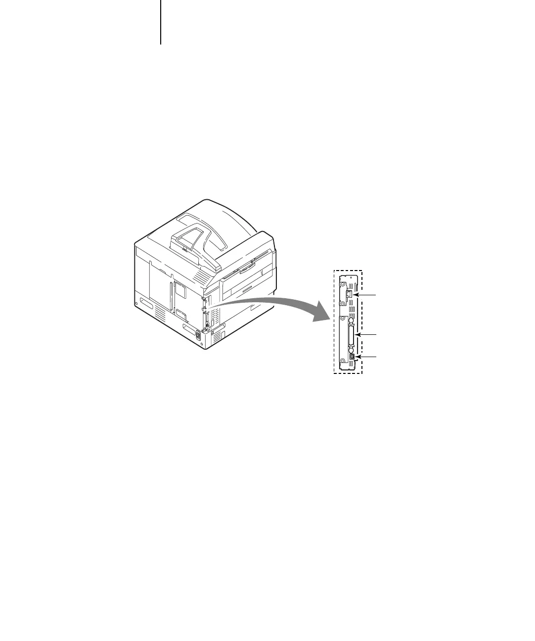In this section, the back panel of the printer is illustrated, followed by information for